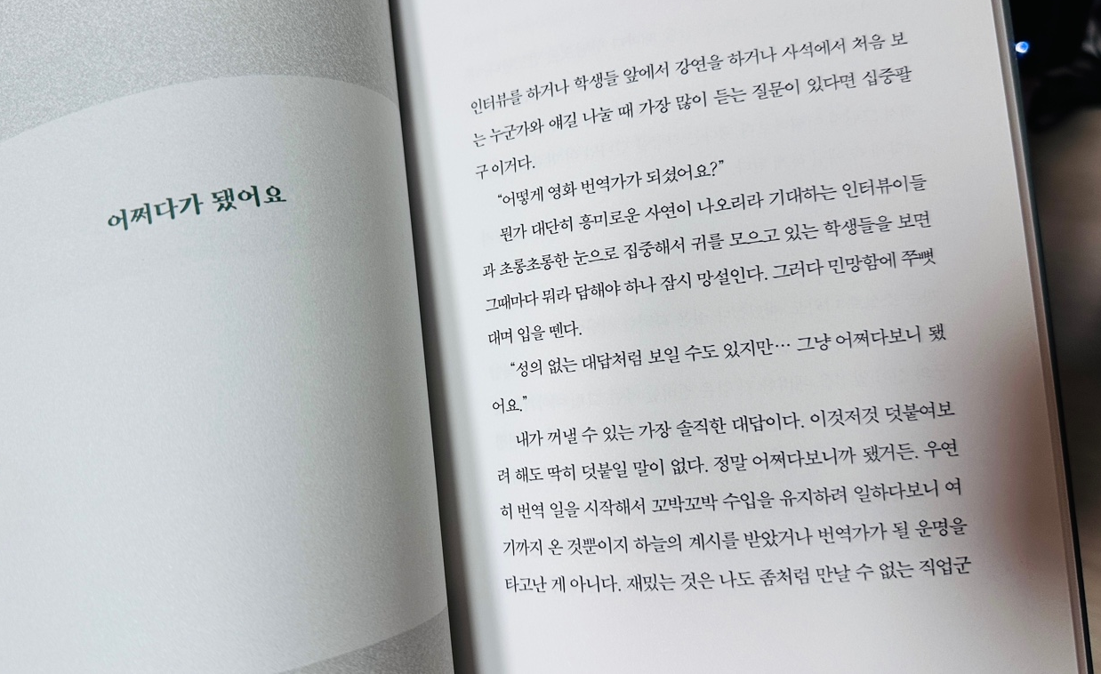 그의 번역을 거친 많은 영화들을 통해 감동을 받아온 분들이라면 꼭 한 번쯤 읽어보시길 추천드립니다.
